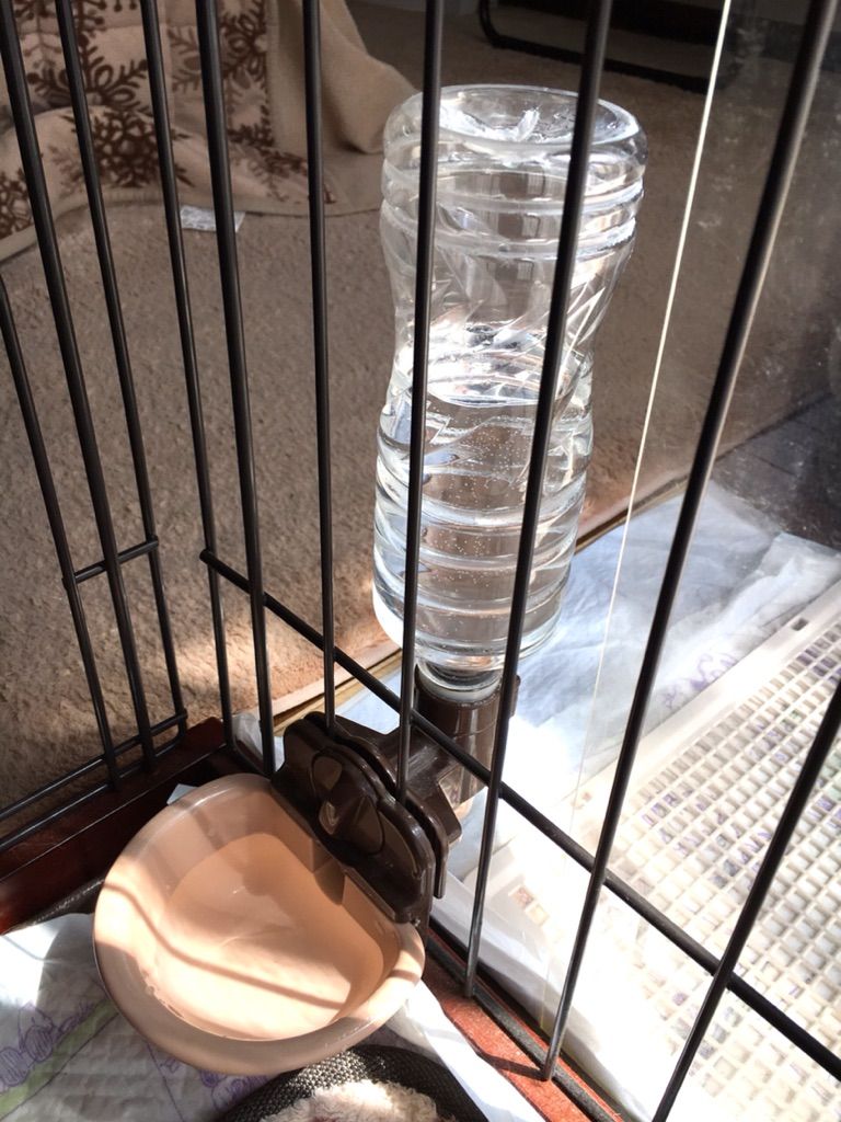今はケージ内にお皿型の給水器と、