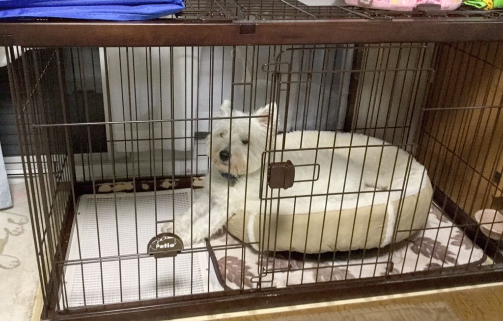 今は寝るだけの小さいケージ