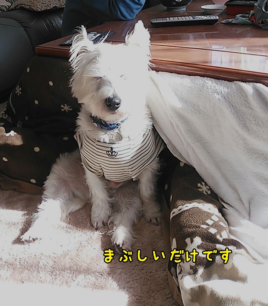 意地を張ってる白犬
