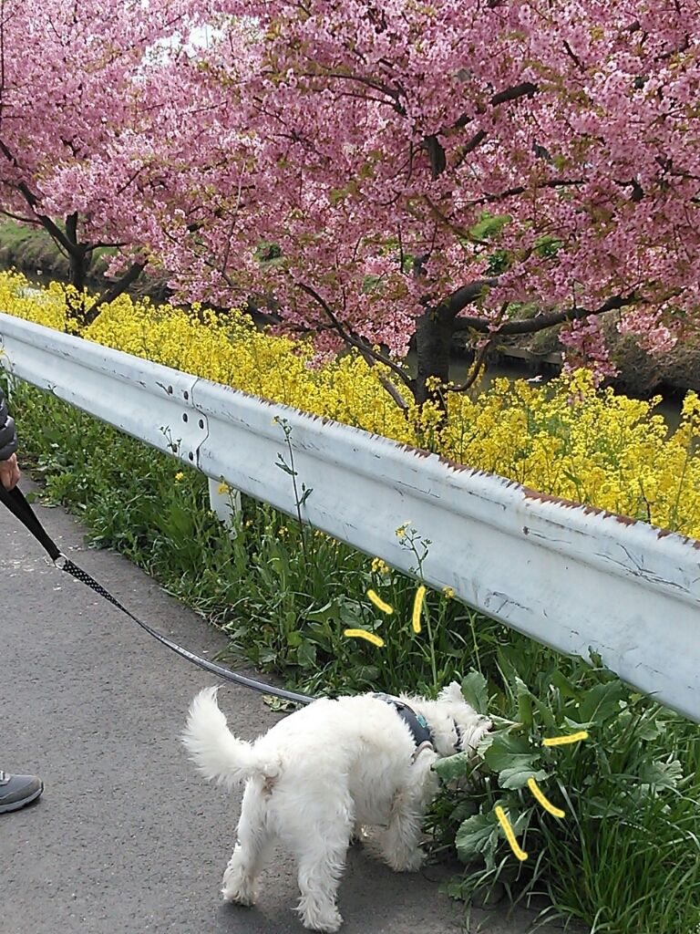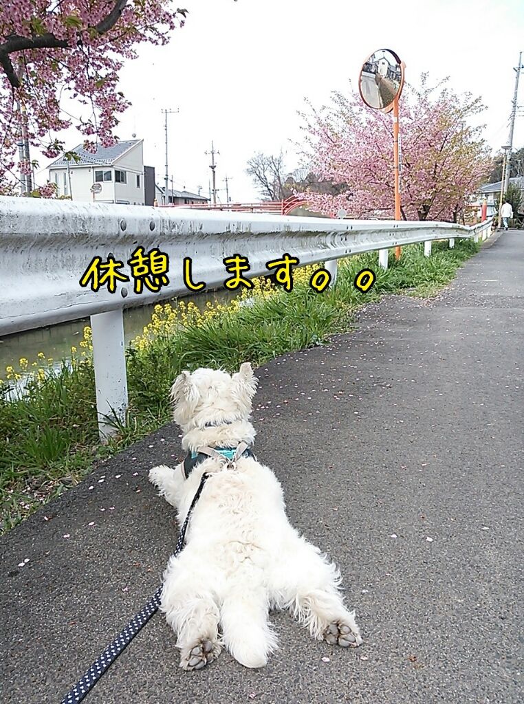 早く暖かくなって楽しい散歩がしたい白犬&人間です