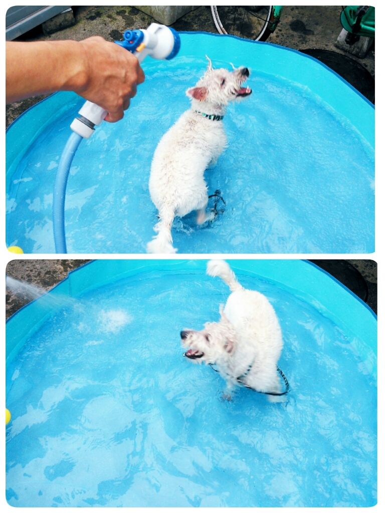 暑さを紛らわすために水遊びをしたり