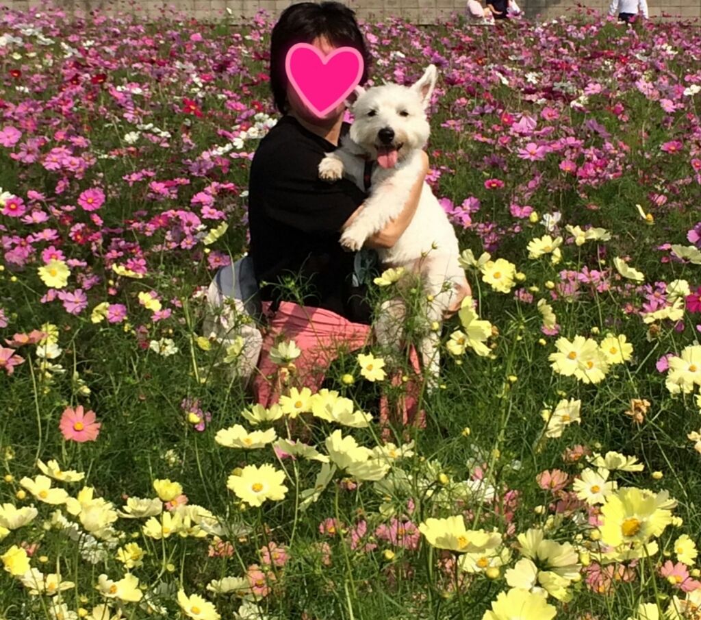 写メを撮っていたらすかさず邪魔をしにやってくる白犬
