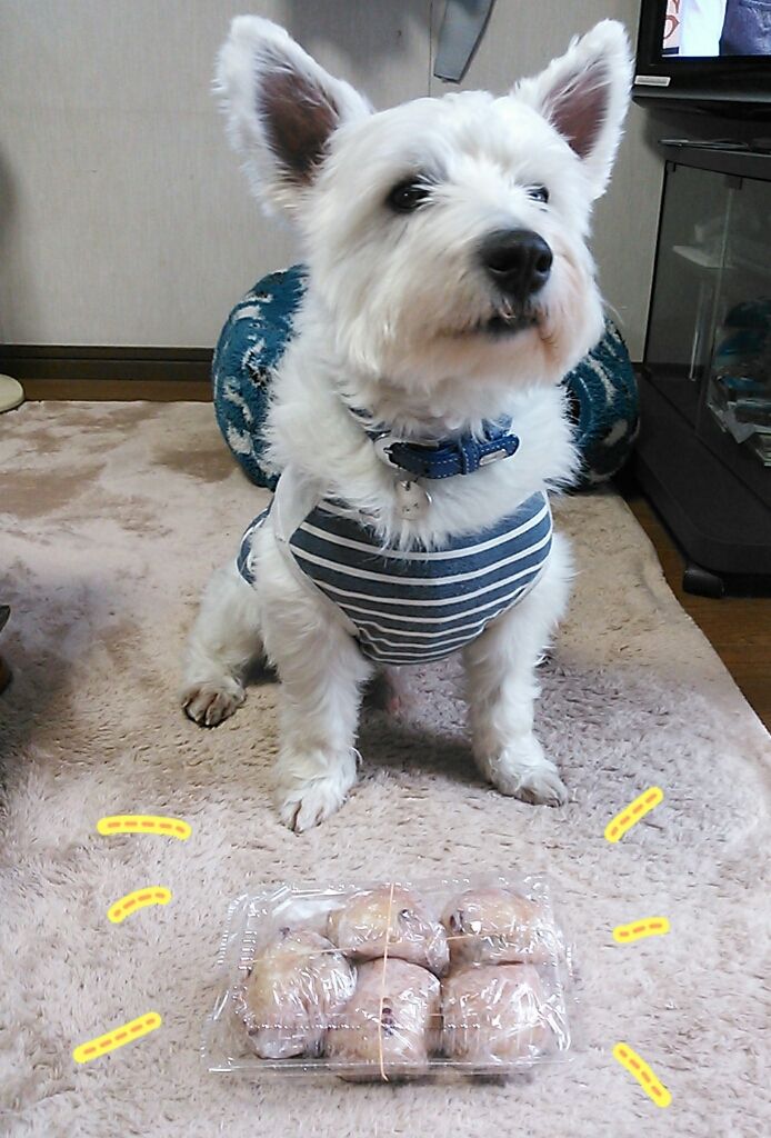 そんなお利口なルイ君に「いがまんじゅう」を進呈~!(●´艸`)
