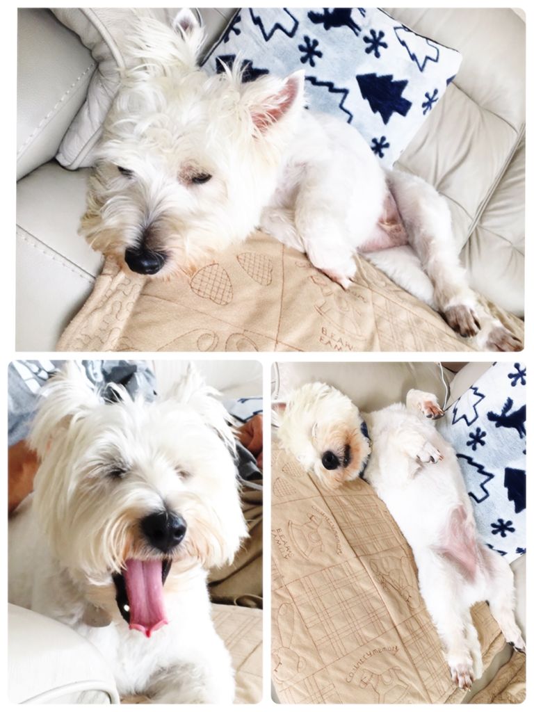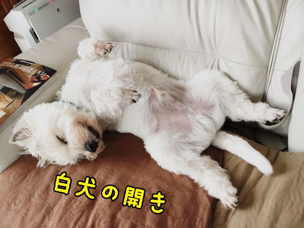 寝てるか、食べてるか、の相変わらずな白犬です